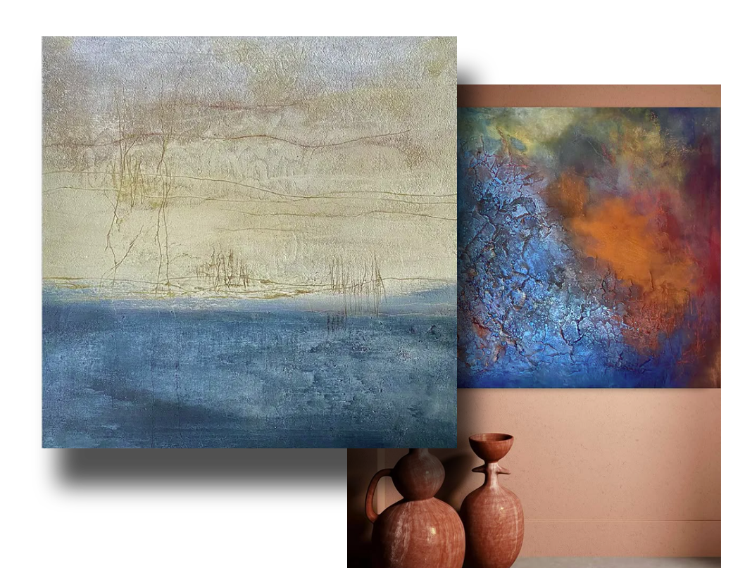 Perspektiven immer wieder neu zu denken, geht einher mit der Vorgehensweise im Abstrakten. Dabei sind Rest-Materialien wie Rost, Asche, Tuffgestein, diverse Fasern besonders schön zu nutzen und werden auf diese Weise auf ganz andere und neue Weise gewissermaßen wiedergeboren.